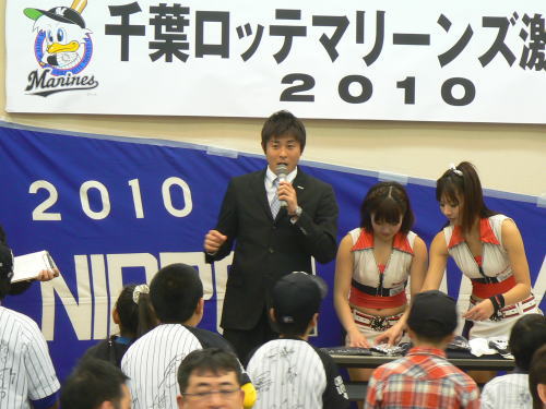 ![]() 最初のイベントはトークショーです!神戸選手の明るいキャラクターが うけていました!山室選手が初々しい! |